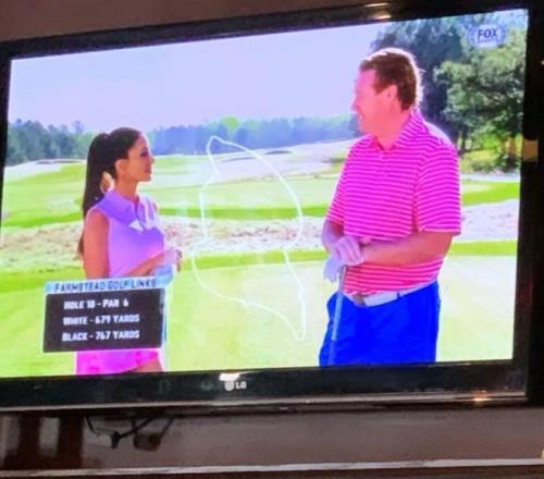 她名叫霍利-桑德斯,是福克斯体育频道一位备受瞩目的主持人,主要工作是担任高尔夫球解说员以及采访工作,每天都会接触不少高尔夫届的名人和富豪。