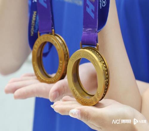 备受瞩目的完赛奖牌则化身为“可佩戴的城市微型博物馆”,其设计灵感源于精密齿轮轴承,致敬黄埔深厚的制造业根基。奖牌中央的圆环内圈镌刻的开拓者雕像、科学城地标、知识城九龙湖等图案,转动时交替显现,宛如一条缩微的“城市发展能量带”,隐喻着个人拼搏精神与城市前进动力的同频共振。