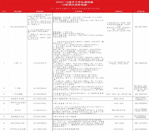 免费参观景区清单(活动解释权以各景区说明为准)。表格来自广州马拉松赛组委会