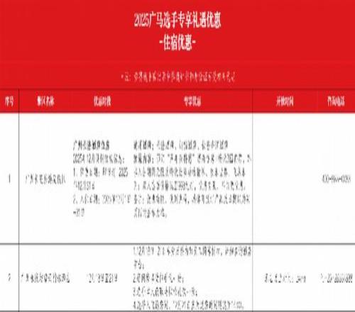 住宿优惠酒店(活动解释权以各酒店说明为准)。图片来自广州马拉松赛组委会