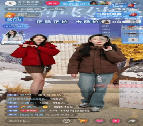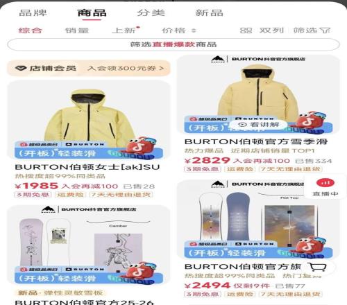 庞大的流量迅速转化为市场动能,直接促进了相关品类销量显著攀升,“轻装滑”趋势带动羽绒、滑雪等类目支付金额同比增长54%。东方甄选、与辉同行、交个朋友等头部直播间纷纷开设趋势种草专场;骆驼、雪中飞等品牌直播间内,相关商品交易额表现亮眼,印证了“轻装滑”背后可观的市场潜力。