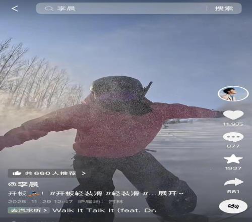 线上,抖音集结明星阵容,以真实、轻松的视角演绎“轻装滑”生活,丁嘉文从片场秒切雪场,李晨从客厅直达开板现场,陈伟霆则从酒店瞬移雪道,场景切换之间,传递出“随时出发,轻盈入雪”的态度。李晨、周琼洁、吴莫愁等明星还担任了“轻装户外推荐官”,引领大众体验滑雪中的 chill 时刻。