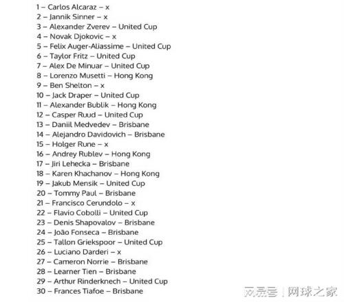 在前三十选手中,参加布里斯班赛的有梅总、达维多维奇、保罗、沙波瓦洛夫、丰塞卡、蒂亚福、勒纳钱、诺里以及卫冕冠军莱赫卡。