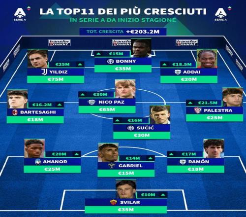 北京时间12月23日,在更新了意甲球员的身价之后,德转还列出了自2025-26赛季开始后,身价涨幅最高的11人阵容,尼科-帕斯暴涨3000万欧元第一,凯南-伊尔迪兹上涨2500万欧元第二,帕莱斯特拉上涨2150万欧元第三,巴尔泰萨吉、博尼以及苏契奇也都榜上有名。