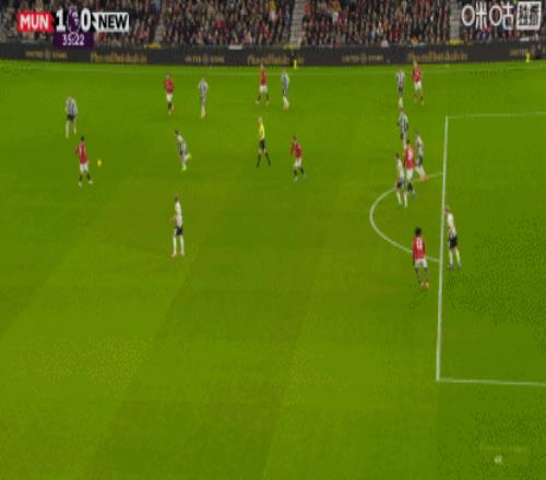 第24分钟,多古二点迎球凌空抽射破门,攻入曼联生涯首球,曼联1-0!