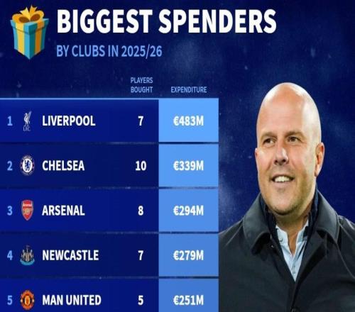 根据德转的统计数据,本赛季各大俱乐部的引援花费情况揭晓,利物浦以4.83亿欧元的投资位居榜首,展现出其在转会市...