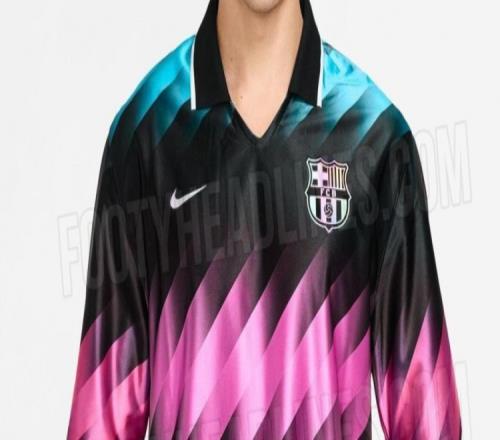 巴萨202627赛季复古球衣设计曝光黑色主色调搭配青绿色粉色渐变条纹_西甲直播