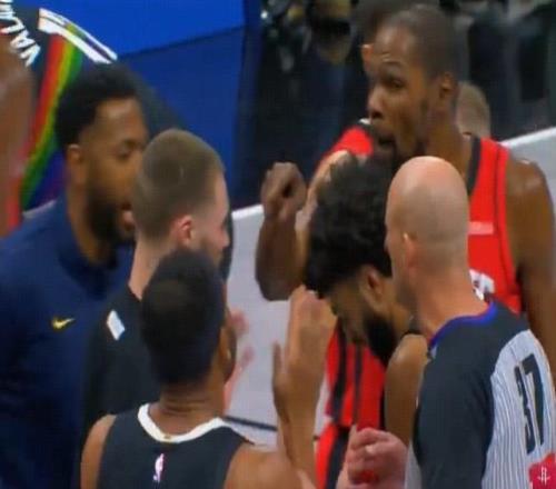 北京时间12月21日,NBA常规赛,掘金主场不敌火箭。在比赛第三节末端,杜兰特与其篮网时期队友布鲁斯-布朗互喷垃圾...